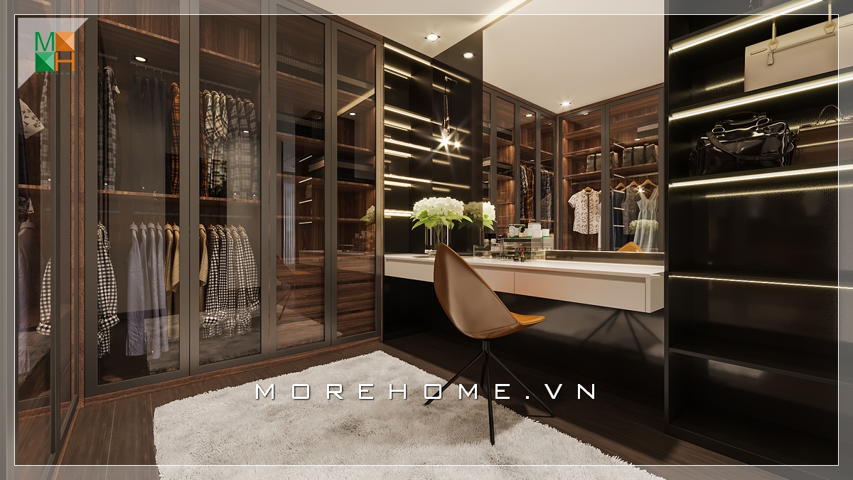 Thiết kế nội thất phòng thay đồ rất hiện đại và sang trọng phù hợp cho các nhà chung cư, nhà phố, biệt thự.