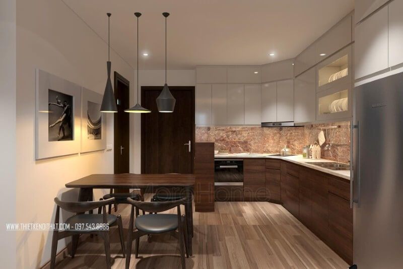 Thiết kế tủ bếp hiện đại âm tường kiểu dáng chữ L giúp tiết kiệm tối đa diện tích cho không gian sống của gia chủ