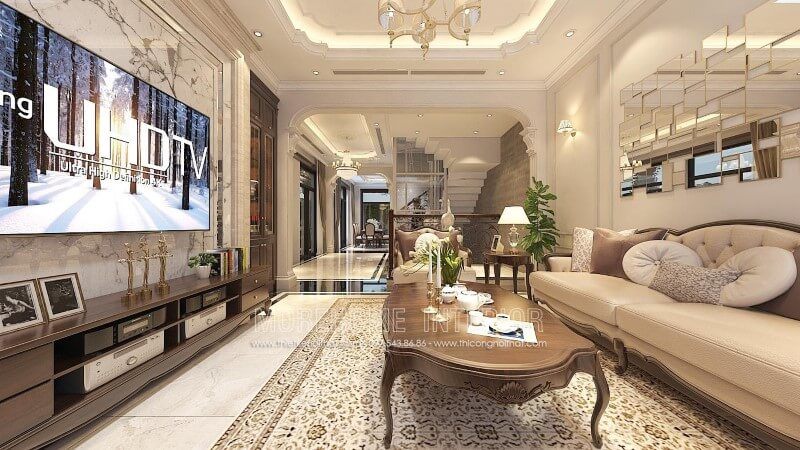 Thiết kế nội thất phòng khách biệt thự phong cách tân cổ điển sang trọng, đẳng cấp
