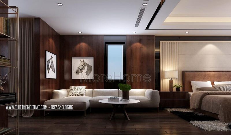 Phòng ngủ thiết kế phong cách hiện đại sử dụng gỗ óc chó dành cho nhà phố, biệt thự mang đến sự ấm áp tiện nghi