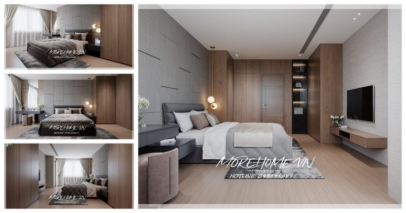Thiết kế phòng ngủ sang trọng với nội thất gỗ tự nhiên tông màu trung tính nâu trắng tạo sự đẳng cấp hơn cho gia chủ