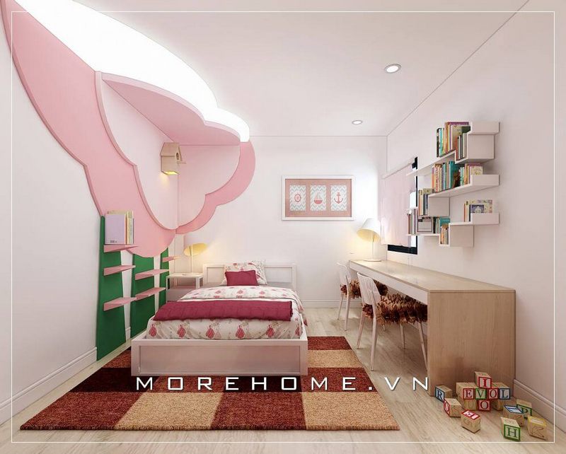 Mẫu giường ngủ gỗ công nghiệp được gia chủ lựa chọn cho không gian phòng ngủ con