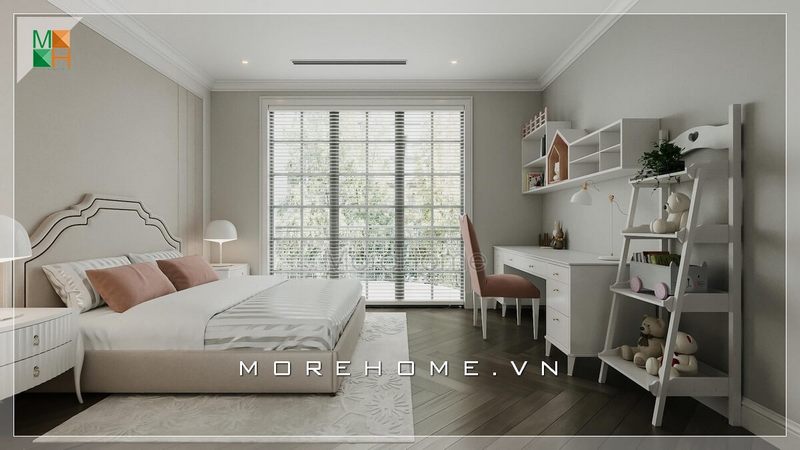 Thiết kế giường ngủ cho bé hiện đại, đơn giản nhưng không kém phần tiện nghi