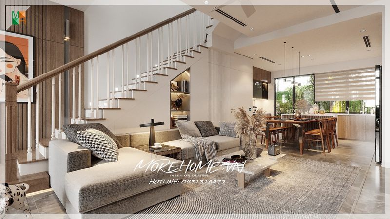 Phòng khách không gian chính của ngôi nhà nội thất trang trí phù hợp với không gian mang tới sử dụng tiện nghi, khoa học, thẩm mỹ cao