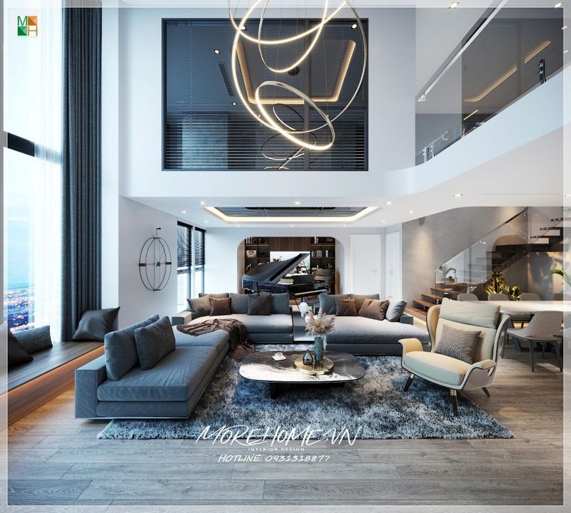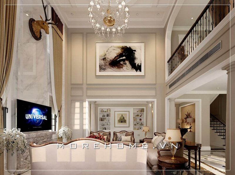 Trang trí nội thất tân cổ điển đẹp dành cho phòng khách trong căn hộ thông tầng như duplex, penthouse.