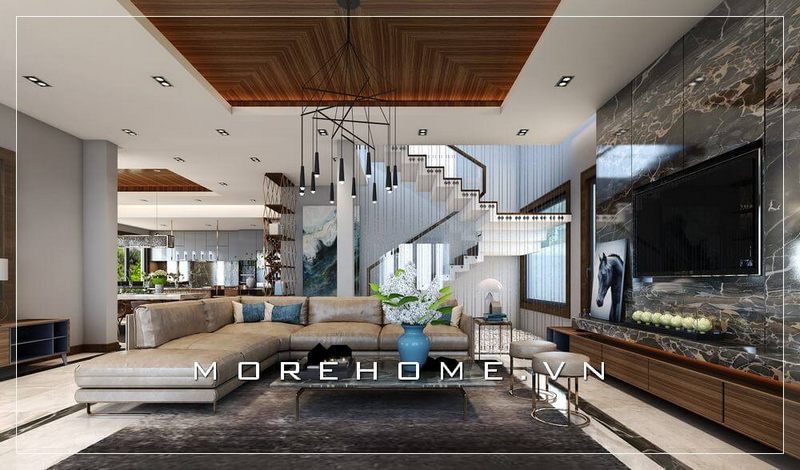 Không gian đẹp, sang trọng với ý tưởng thiết kế nội thất hiện đại cho phòng khách biệt thự, nhà phố.