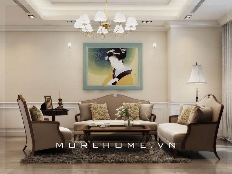 Ghế sofa tân cổ điển màu be cho chung cư cao cấp