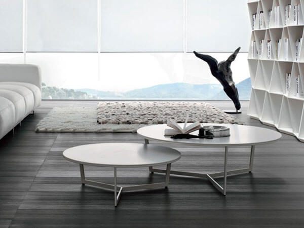 Bàn trà đôi mặt đá hình tròn góp phần mang tới cho không gian phòng khách của gia đình sự sang trọng hiện đại và tinh tế.