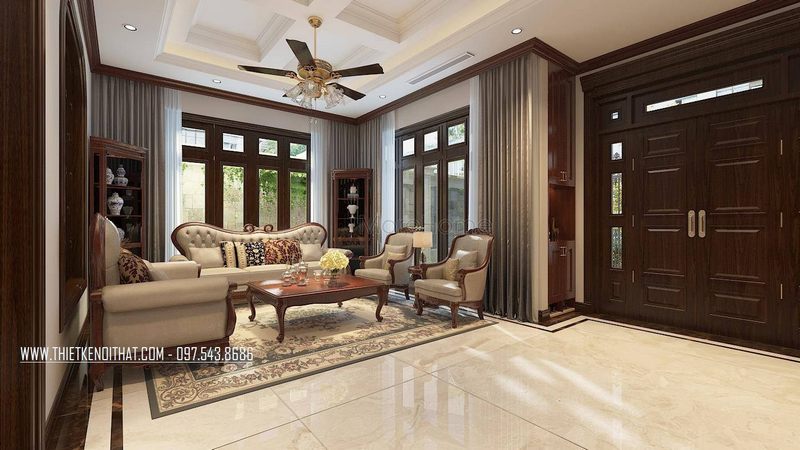 Bố trí nội thất phòng khách biệt thự tân cổ điển cao cấp, sang trọng