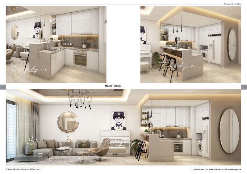 Mẫu thiết kế kiến trúc phù hợp cho chung cư, nhà phố, với thiết kế liền không gian giữa phòng khách, phòng ăn và phòng bếp, mang lại không gian sống hiện đại trẻ trung mà cao cấp cho ngôi nhà của bạn