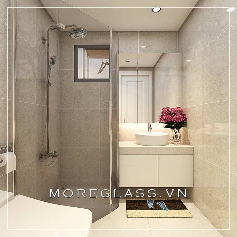 Vách tắm kính cường lực giúp giới hạn lượng nước bắn ra khi sử dụng phòng tắm đứng, đồng thời cũng tiện lợi cho việc bảo vệ các nội thất và thiết bị xung quanh.