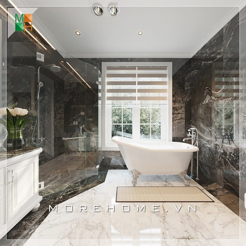 Thiết kế phòng tắm hiện đại của biệt thự, nhà phố với bồn tắm tiện lợi làm tâm điểm là một ý tưởng tuyệt vời để nhiều gia chủ lựa chọn, trong đó đá ốp cao cấp là một trong những sự lựa chọn hàng đầu.
