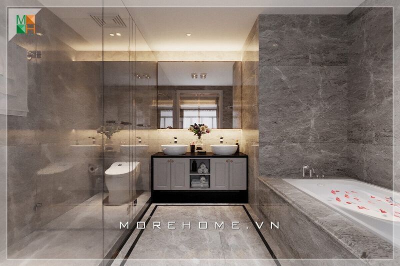Thiết kế phòng tắm biệt thự sang trọng sẽ giúp tạo ra cảm giác thoải mái khi bước vào căn phòng.