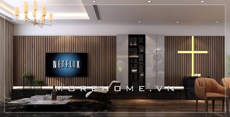 Gỗ ốp tường là một trong những xu hướng trang trí nội thất đẹp nhất, tạo ra một cảm giác ấn tượng đối với phòng khách căn hộ chung cư.